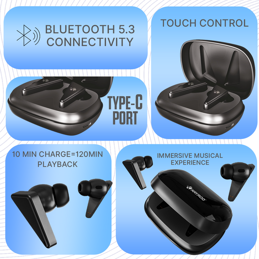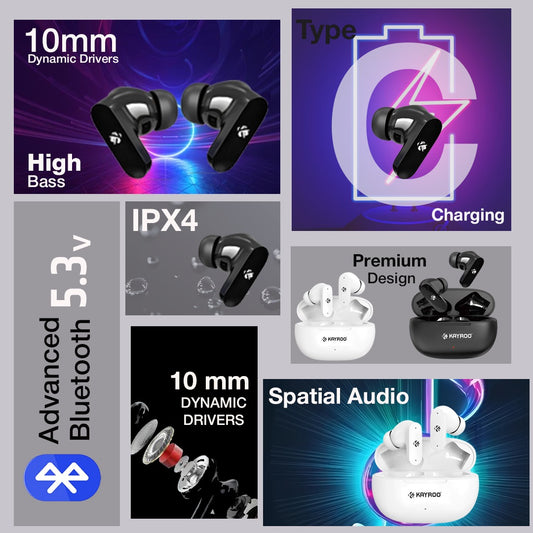 Kayroo KTW-510 TWS Earbuds, 30 Hours Playback Time, Crystal Clear HD Audio With Powerful Bass