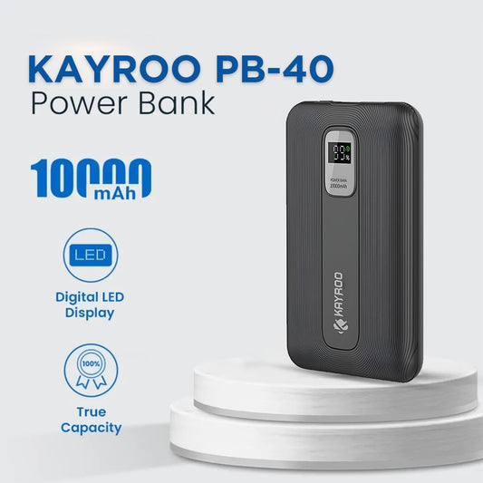 KAYROO PB-40 10000mAh 45W PD+Quick Charge 3.0 Fast Charging Slim & Compact Powerbank, 45W Fast Charging, USB & Type C Output, Power Delivery, Quick Charge for iPhone, Android & Other Devices