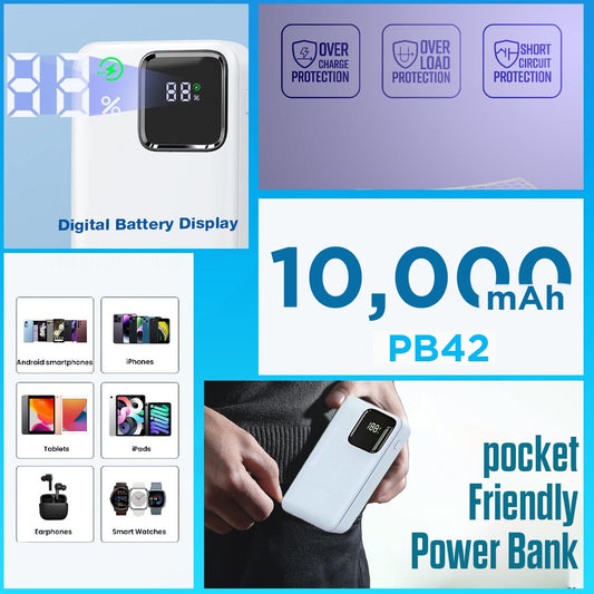 KAYROO PB-42 10000 Mah 65 W Fast Charging Powerbank , PD+ Qualcom 3.0 Quick Charge Technology