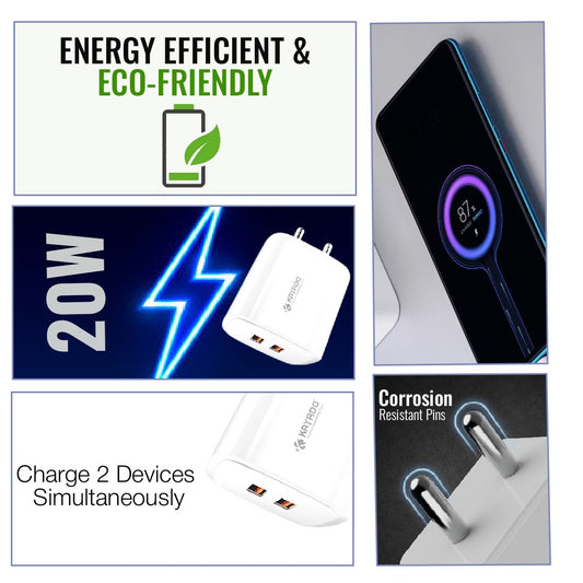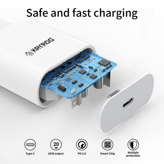 Kayroo SMART-303 20W Fast Charger PD Type-C for Android, iPhone 16 Pro/Pro Max /15 Pro/Pro Max/14/14 Plus/ 14 Pro/ 14 Pro Max,13/13 Pro/13 Pro Max/13 Mini, 12/12 Mini/ 12 Pro Max, iPhone 11 Series