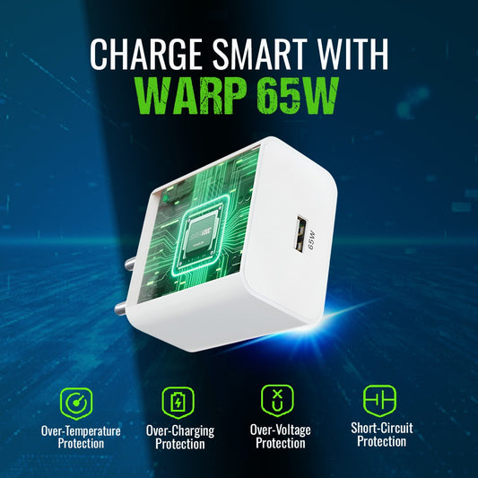 Kayroo TC-308 65W Fast Charger Adapter USB Type-A Dock for Oneplus 12/12R/11/11 Series, Vivo V30/V30 pro/40/40pro/23/23 Pro,Samsung M Series, Mi, Redmi, Xiaomi, Oppo, Vivo, Infinix