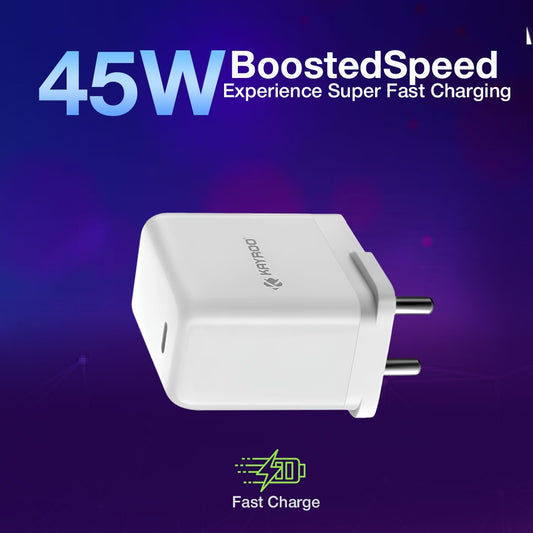 Kayroo SMART-302 45W Fast Charger PD Type-C for Samsung Galaxy S23/S23+/S22 Ultra/S22+/S22, Note 10/Note 20/S20/S21/S10/S9/S8, Mac Book, Redmi, Mi, Oneplus, Oppo, Vivo, Motorola