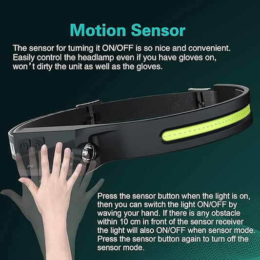 LED Rechargeable Headlamp with C Type Charging Port 230° Wide Range Brightness Motion Sensor 5 Lighting Mode for Cycling Fishing Camping Climbing DIY etc. (1 pc)